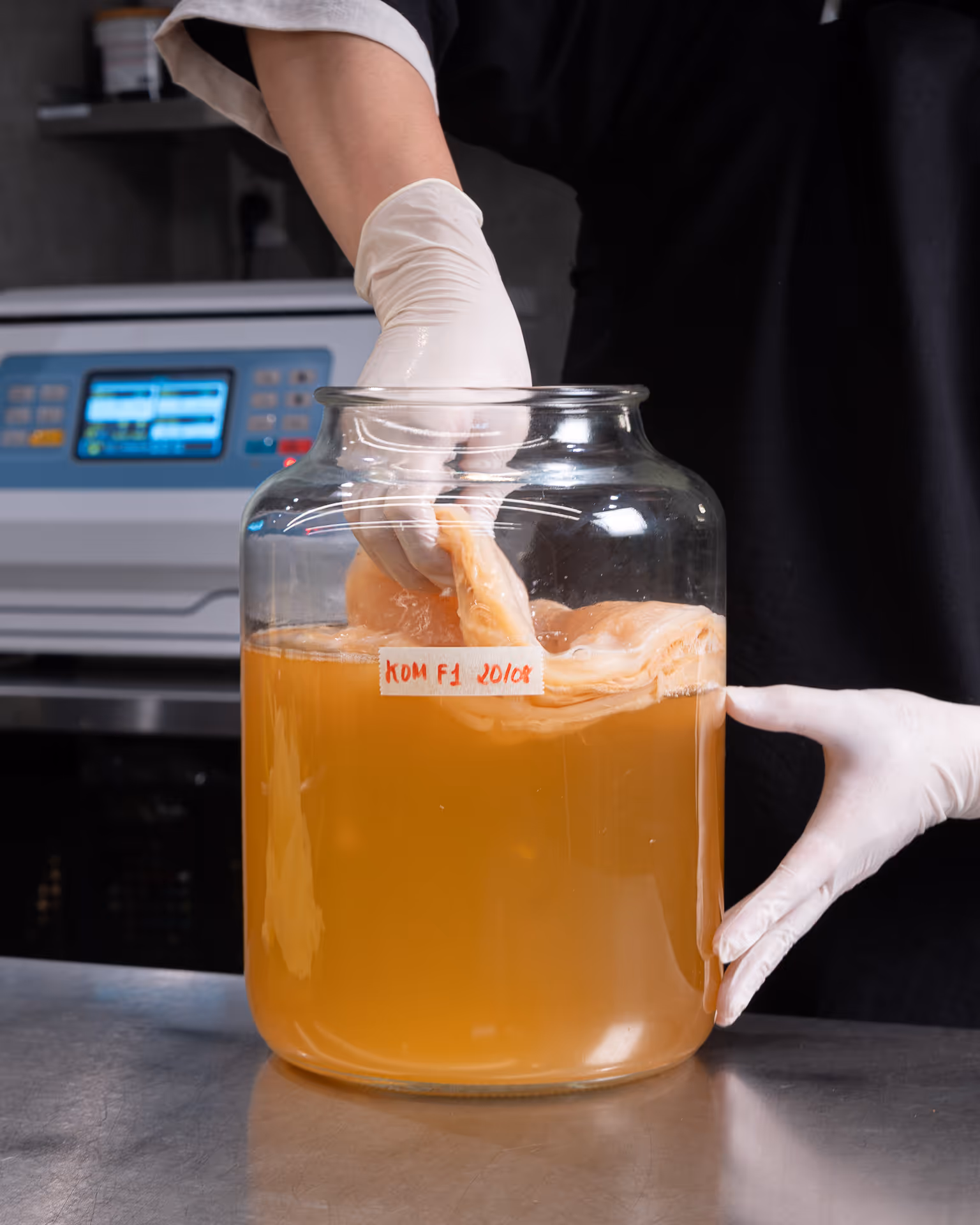 Là quy trình tạo ra thức uống kombucha bằng cách sử dụng một cộng đồng vi sinh vật có lợi gọi là Scoby (Symbiotic Colony of Bacteria and Yeast) để lên men hỗn hợp trà đường.